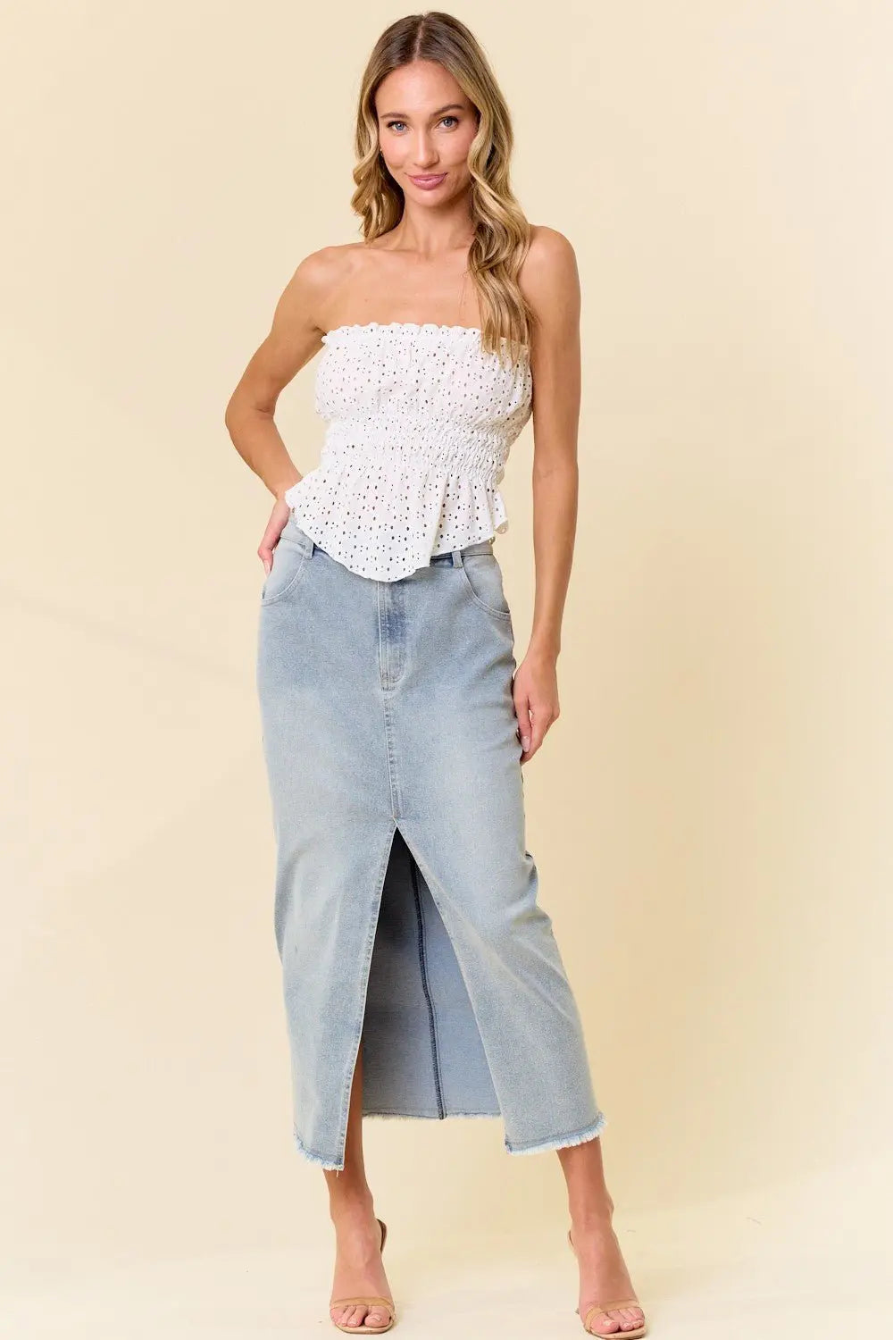 Want You Back Midi Front Slit Denim Skirt